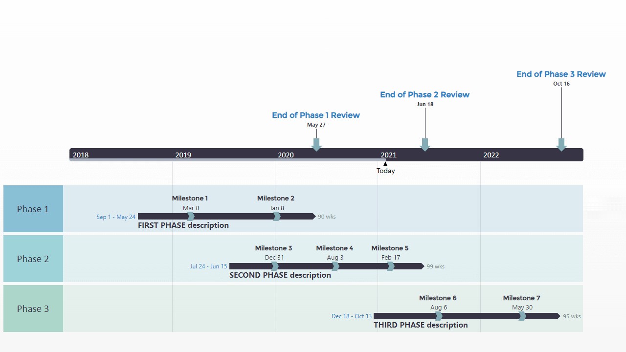 Break the implementation into clear phases and smaller tasks. Start with big stages such as requirements, design, build, test and launch, then list the specific deliverables inside each stage.